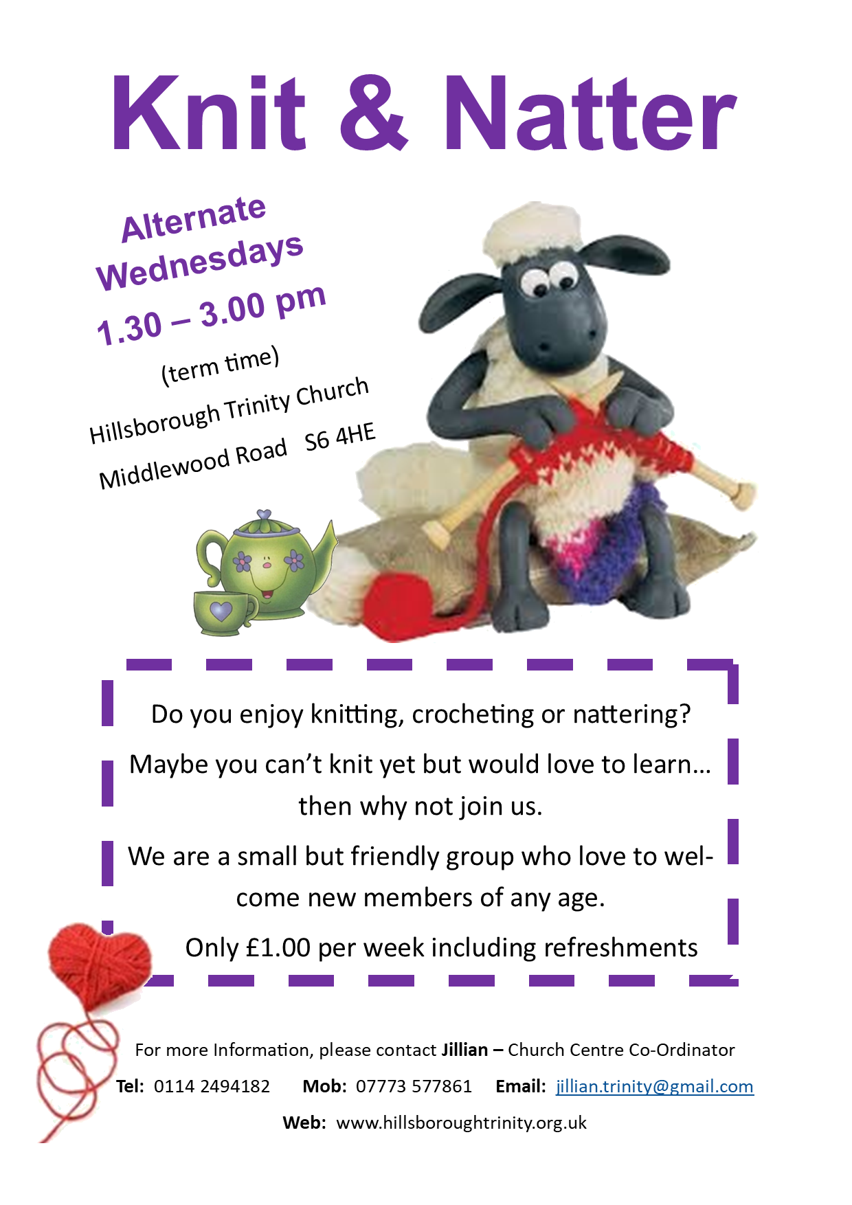 | Afternoon | Karen’s Christian Fellowship | Kumon’s | Knit & Natter | ||||